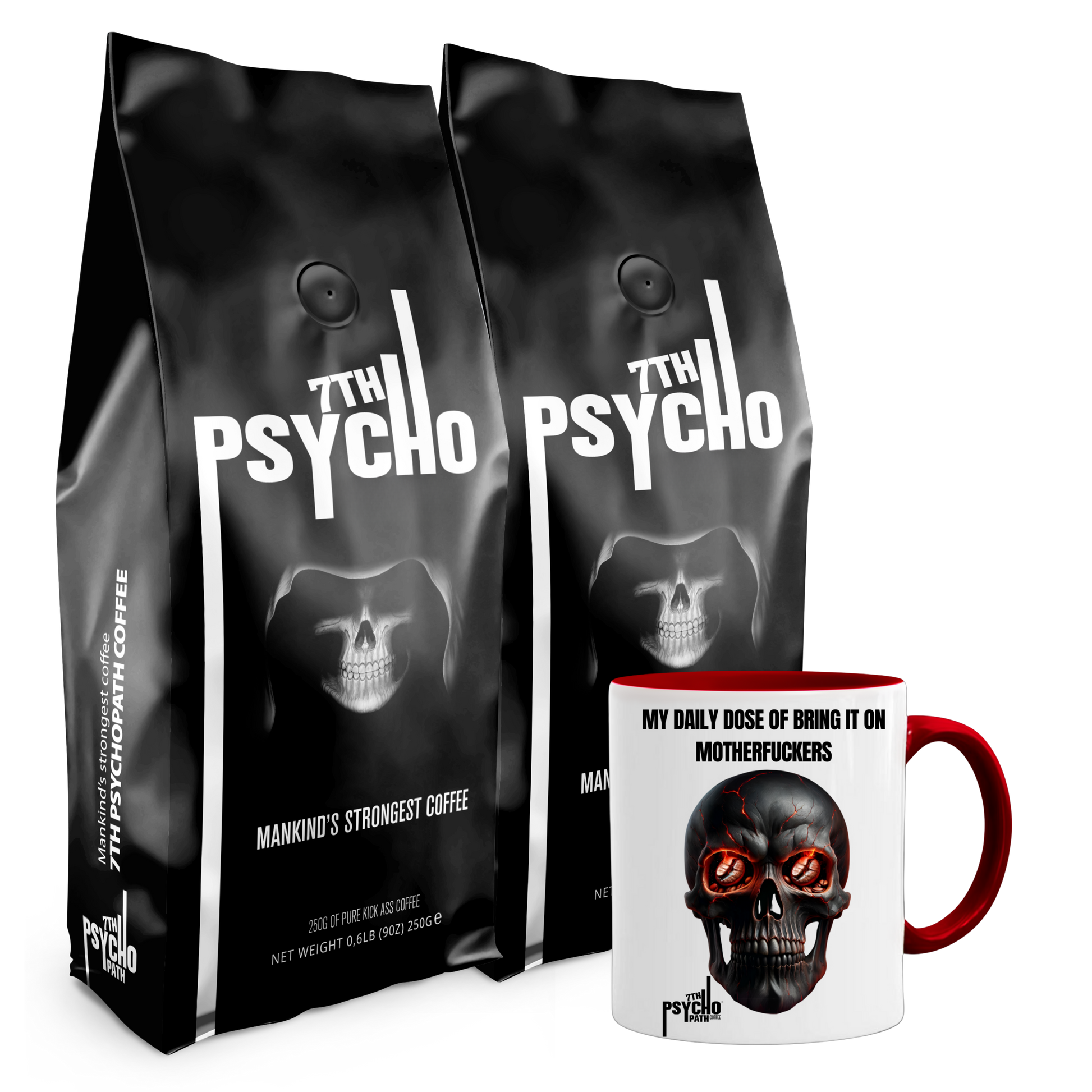 - Two 250g bags of 7th Psycho Coffee, each packed with the power to fuel your most daring days and wildest nights.